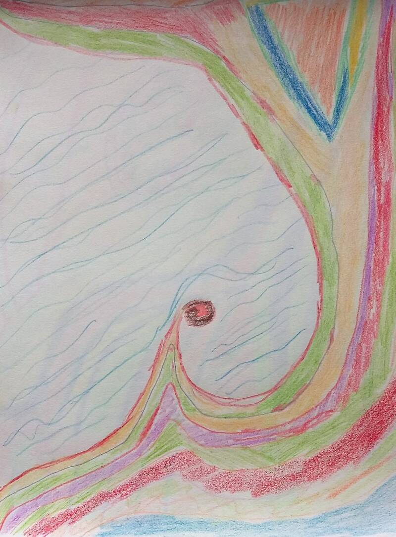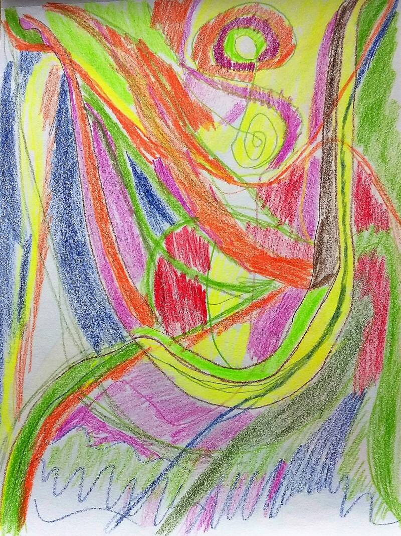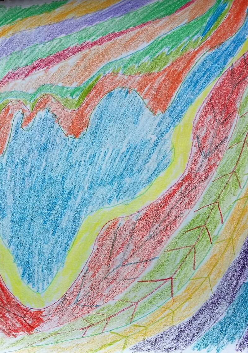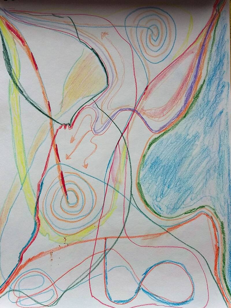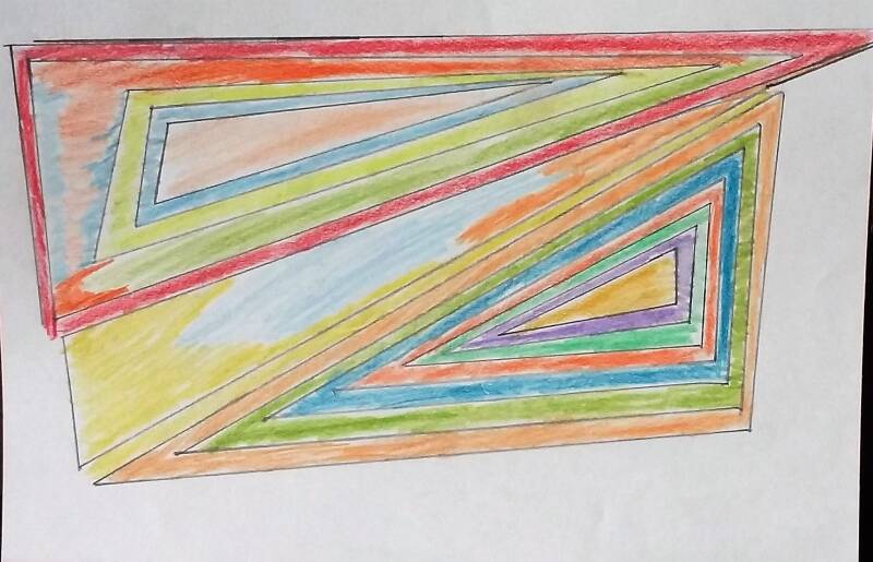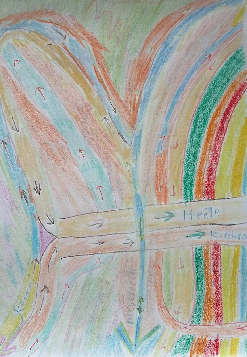 Allereerst mijn naam is Rhido. Tussen 2017 en 2020 net voor coronacrisis deed ik dagbesteding op het Papagenohuis in Laren voor mensen met autisme. Mijn style was vooral met pijlen en lijnen. Maar ook begon ik daarna steeds losser te werken. En ik deed het vooral met kleurpotloden. Ook probeerde ik landschappen te gaan tekenen.